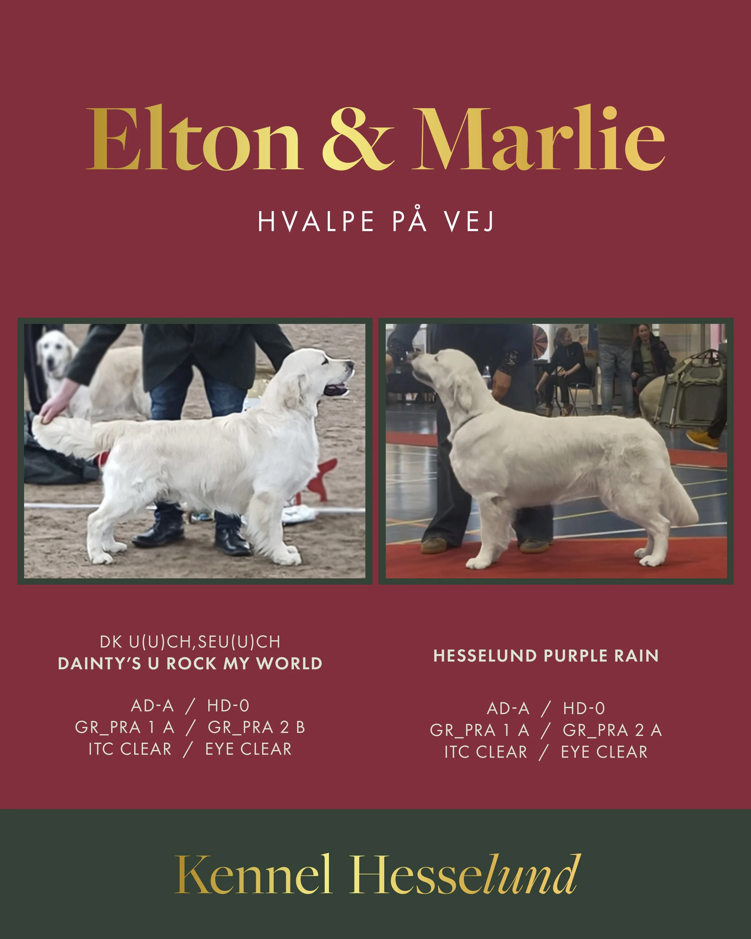 Nedenfor er mere information om forældrene og billeder af de dejlige hvalpe.